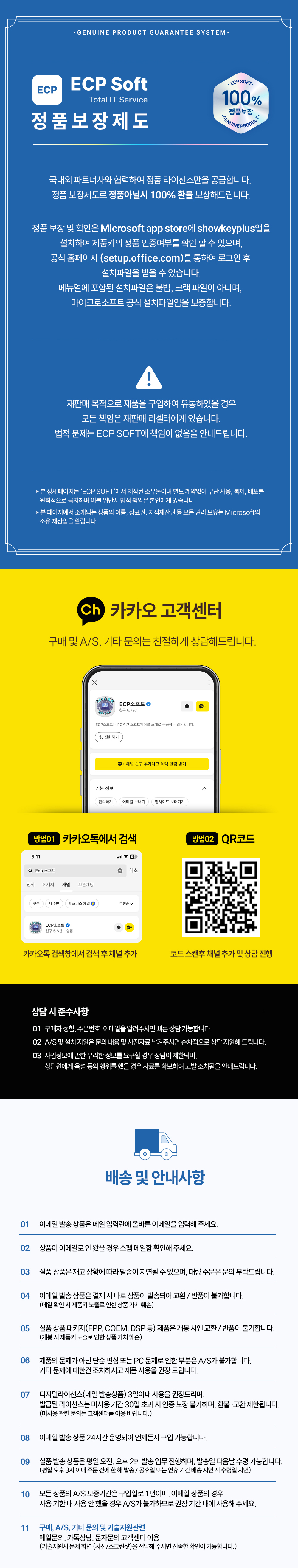 Windows와 Office는 각각 별도의 정품 키가 제공되며, 한 대 PC 사용 가능합니다.